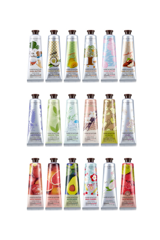 청정 자연에서 온 뷰티에너지를 전하는 화장품 브랜드 네이처리퍼블릭(대표 정운호)은 고온 스팀 공법으로 안정화한 시어버터 성분이 실크처럼 부드러운 손으로 가꿔주는 '핸드 앤 네이처 핸드크림' 18종을 출시했다고 24일 밝혔다.