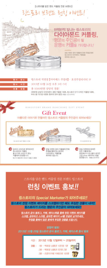 링스토리의 관계자는 '이번 이벤트는 그 동안 천편일률적인 커플링 디자인을 탈피해 새로운 사랑이야기를 커플링 디자인에 녹아 들도록 준비한 링스토리를 소비자들에게 직접적으로 알리고 신선한 커플들의 감성적인 시그니처로 브랜드 이미지를 구축하는데 의미 있는 행사가 될 것'이라고 전했다.