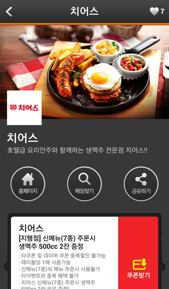 치어스(대표이사 정한)가 오늘부터 본격적으로 브랜드 인지도 제고와 고객의 성원에 보답하고자 치어스 일부 매장에서 네이버 '12시'라는 앱을 통하여 매일 정오 12시에 신메뉴 7종 중에 한가지를 주문 시 생맥주 500cc 2잔을 무료로 제공 받을 수 있는 쿠폰을 선착순으로 발행한다.