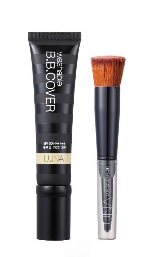 신제품 '루나 워셔블 비비커버' 출시기념으로 베이스 메이크업 전용 브러시 '듀얼 베이스 브러시(Dual Base Brush)'를 무료증정한다. 듀얼 베이스 브러시는 넓은 부위에 사용하는 풀커버 브러시와 눈밑이나 잡티 등 커버가 더 필요한 부분에 사용하는 컨실러 브러쉬시 함께 구성되어 빠르고 간편하게 메이크업을 완성시켜준다. [소비자인사이트/스포츠조선] 송진현 기자 jhsong@sportschosun.com