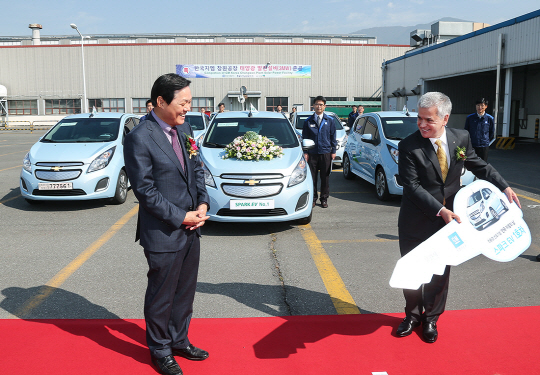 한국지엠은 이날 급속충전 설비와 함께 지난 10월부터 내수차량 생산을 시작한 스파크 EV의 양산 1호차를 창원시에 전달하며 친환경 선도도시에 대한 기업의 적극적인 지원을 약속했다.