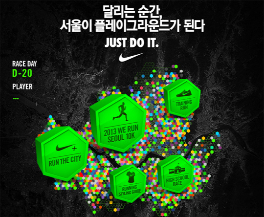 나이키 위런 서울 2013 코스는 서울 광화문에서 여의도까지다. 이번 대회는 카카오톡을 기반으로 실제 러닝과 게임을 접목시킨 'RUN THE CITY GAME'를 통해 1만2,000명, 온라인을 통해 1만5,000명, 나이키 매장을 통해 3,000명 등 총 3만 명이 참가할 수 있다.