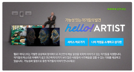 '헬로! 아티스트'(http://navercast.naver.com/list.nhn?cid=220&category_id=220 )는 대중에게 많이 알려지지 못했지만 가능성이 있고 열정적인 시각예술분야의 작가들을 동영상 인터뷰, 글, 사진 등을 이용해 대중들에게 알기 쉽게 소개하는 콘텐츠다.