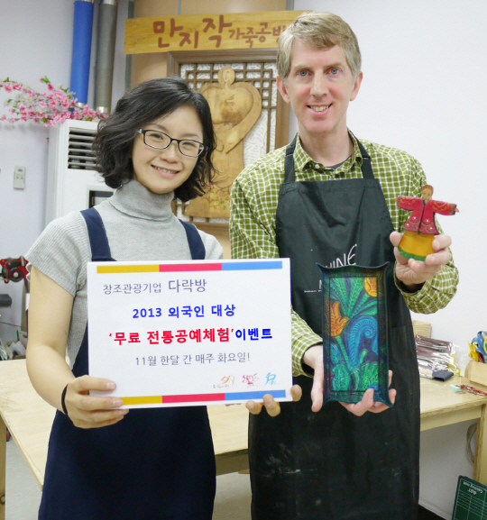 창조관광기업 체험여행 다락방(대표 이진희)은 오는 11월 한달 간 매주 화요일, 국내 거주 또는 방문 외국인을 대상으로 무료 전통공예 체험교실 '외국인과 함께 하는 팸투어'를 개최한다.