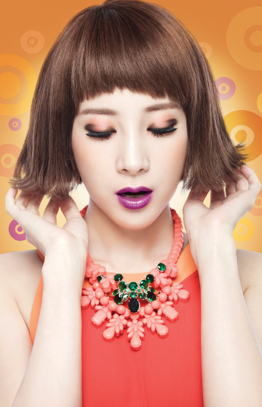 또렷한 보랏빛 입술과 오렌지 투톤의 그라데이션 눈매는 상큼하고 발랄한 여성미를, 반짝이는 핑크 입술과 생기있는 하얀 피부는 사랑스러운 소녀를 표현하였다.