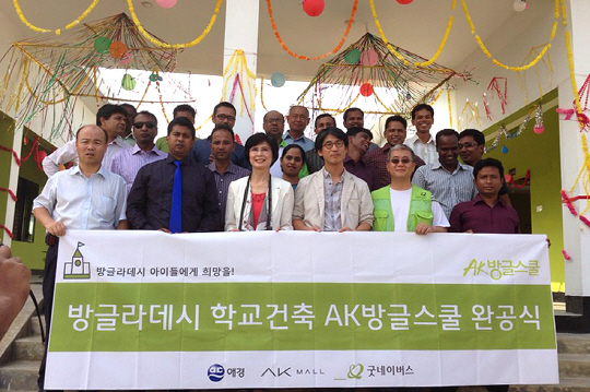 AK방글스쿨은 AK몰이 국제구호개발NGO 굿네이버스와 함께 지난해 4월부터 추진해온 방글라데시 희망학교 건축 프로젝트의 결실. AK방글스쿨은 AK몰 고객들의 자발적인 적립금 기부와 AK플라자, AK네트워크, AM PLUS자산개발 등 애경그룹 계열사들의 도움으로 마련된 총 10만 달러(약 1억1천만원)로 지어졌다. AK몰은 이후에도 최소 3년 이상 AK방글스쿨 운영에 필요한 관리유지비와 교육지원사업을 지속적으로 후원할 방침이다.