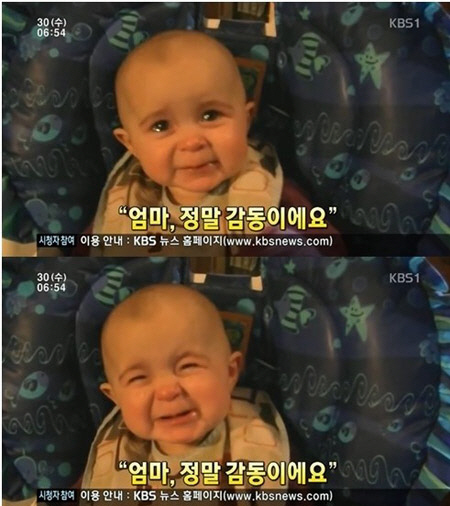 엄마노래에 감격한 아기 영상을 접한 네티즌들은 "엄마노래에 감격한 아기, 어떻게 저렇게 눈물을 뚝뚝 흘리지?", "엄마노래에 감격한 아기, 정말 엄마 노래에 감동한건가?", "엄마노래에 감격한 아기, 아기가 너무 귀엽다" 등의 다양한 반응을 보였다. <스포츠조선닷컴>