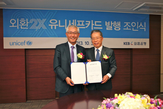 외환은행(은행장 윤용로/www.keb.co.kr)은 지난 30일 을지로 소재 외환은행 본점에서 신용카드를 통한 건전한 기부문화 조성과 고객의 자발적인 사회공헌 참여 확대를 목적으로 유니세프 한국위원회(사무총장 오종남/www.unicef.or.kr)와 제휴카드 발행을 위한 업무 조인식을 맺고 새로운 개념의 기부전용 신용카드인『외환 2X 유니세프카드』를 출시하였다고 1일 밝혔다.