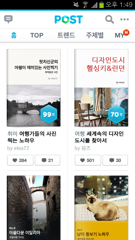 특히 모바일에서의 입체적 소비를 위해 검색과 지도 등 다양한 네이버 서비스 레버리징을 강화했다. 여행 포스트를 보다 첨부된 지도를 클릭하면 지도앱이 연동돼 위치를 찾을 수 있고, 연락처를 누르면 바로 전화통화로 연결된다. 영화, 책, 상품 등 글감첨부를 통해 바로 검색할 수 있는 기능도 제공된다.