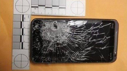 총탄의 총격에 스마트폰의 액정이 깨지긴 했지만, 점원은 다치지 않은 것. 이에 공개된 스마트폰은 박힌 총탄으로 심하게 부서져 있다.