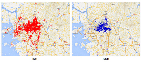 반면 SKT는 9월 30일 '광대역 LTE'를 처음 서비스한 이후 지난 10월 31일 서울 전지역 '광대역 LTE' 구축을 발표했다. KT보다 1개월 늦은 셈이다.