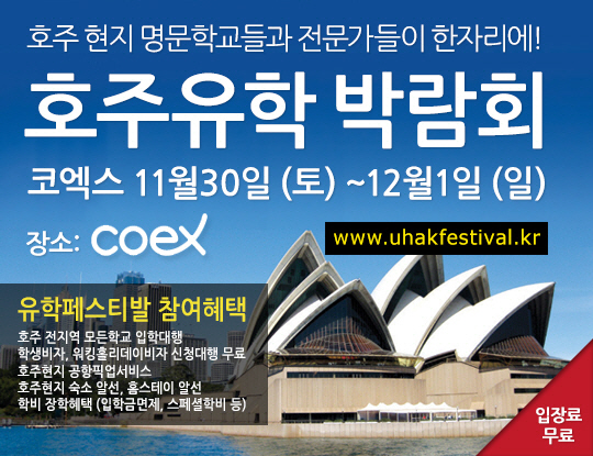 호주어학연수, 호주유학박람회의 참가 예약 및 행사, 참가 혜택에 관한 자세한 사항은 홈페이지(www.uhakfestival.kr)에서 확인할 수 있다. [소비자인사이트/스포츠조선] 송진현 기자 jhsong@sportschosun.com