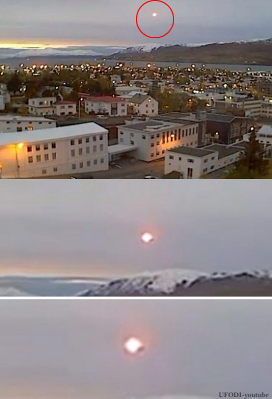 아이슬란드 아쿠레이리에서 포착된 공개된 영상에는 붉은 빛의 불덩어리가 하늘에서 나타난 뒤 천천히 내려오는 모습이 담겨있다.