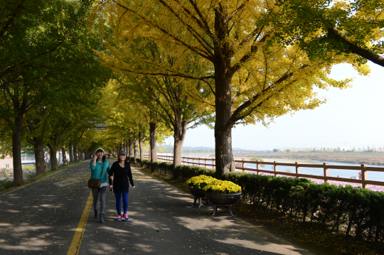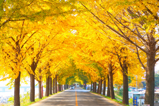 노랗게 물든 은행나무 가로수 길은 만추의 절정을 실감케 한다. 특히 은행나무 길은 따스하면서도 평온함까지 느낄 수 있어 최상의 힐링로드로 꼽을 법하다.