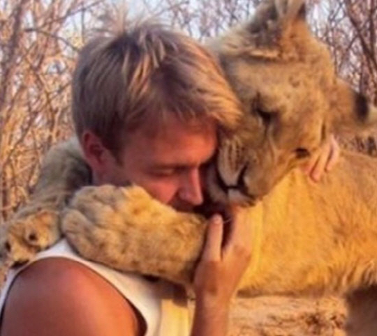 미남 청년 환경보호 활동가와 남아프리카 보츠와나에 사는 맹수 암사자의 따뜻한 포옹 사진이 공개돼 화제를 모으고 있다.