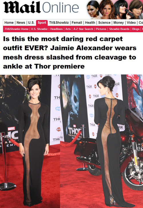 최근 국내에도 개봉된 '토르 :다크월드'에서 조연으로 출연한 제이미 알렉산더(29)가 파격적인 드레스로 눈길을 끌었다.