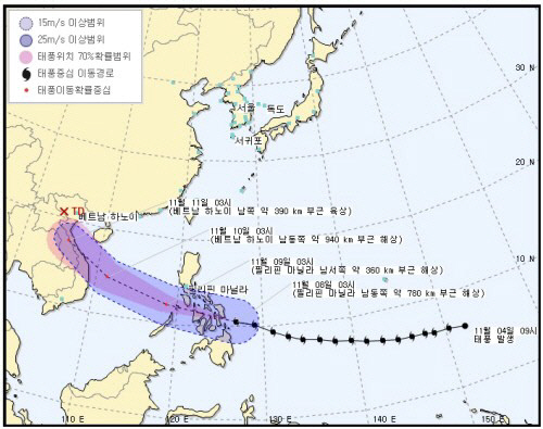 이로써 태풍 반경 600㎞ 이내의 지역에는 시간당 최대 30㎜의 폭우가 쏟아질 것으로 예보돼 큰 피해가 예상돼 필리핀 방재 당국에 비상이 걸렸다.