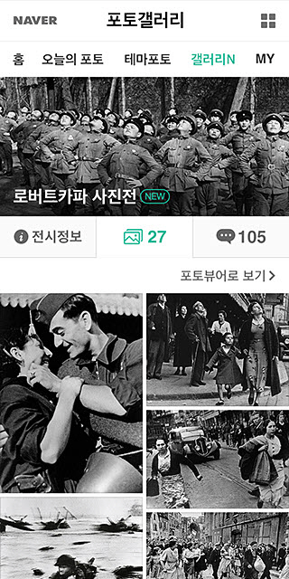 또한, '갤러리N' 카테고리를 통해 '로버트카파 사진전' 등 오프라인 전시회나 페스티벌 사진도 만나볼 수 있다.