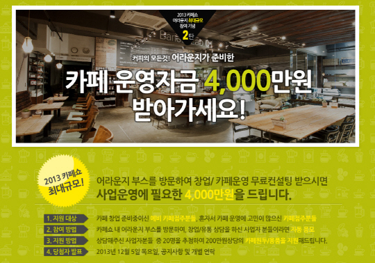 어라운지, '2013서울 카페쇼'에서 카페 지원금 4,000만원 쏜다!