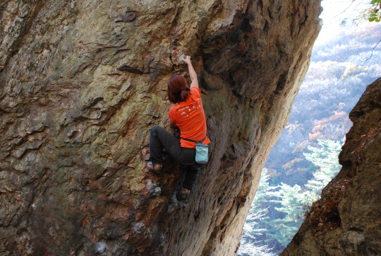 | 맨손으로 바위를 오르는 아웃도어 스포츠 볼더링이 최근 젊은층을 중심으로 인기를 끌고 있다. |