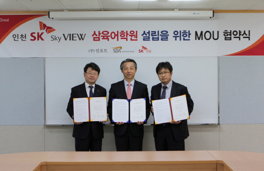 SDA교육(사장 전부권)이 SK건설과 SDA삼육어학원 설립 관련 양해각서(MOU)를 체결했다. MOU는 인천 SK Sky View 아파트 단지 내 SK건설이 무상으로 제공하는 공간에 SDA삼육어학원 설립을 위한 협약이다.