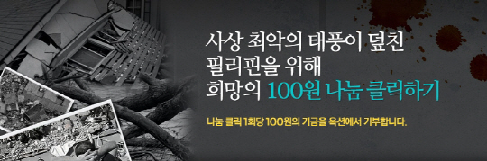 이번 모금 행사는 옥션 검색창에서 '필리핀 태풍'으로 검색하면 자세한 내용을 확인할 수 있다.