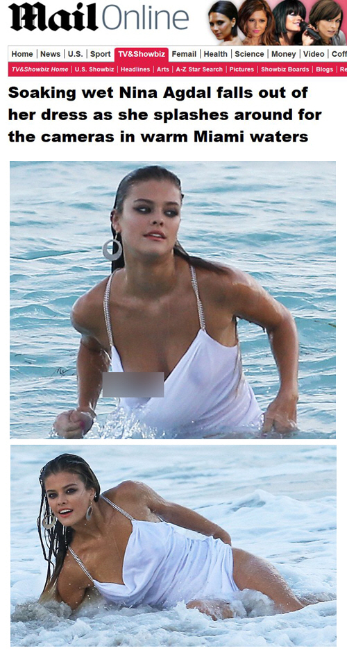 덴마크 출신 모델 니나 아그달(21)이 가슴 노출 사고를 당했다.