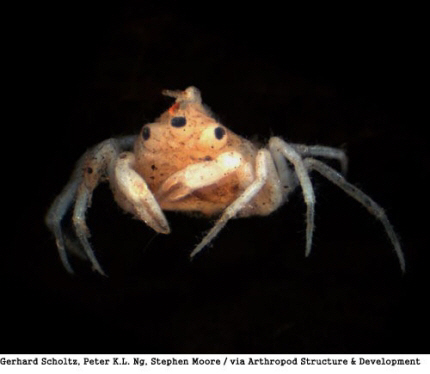 '눈 3개를 가진 게'의 실체는 부화 이전 두 마리가 붙어있는 샴쌍둥이 게였으나, 한 마리는 소멸됐고 그의 눈만 흔적으로 남은 것이라고 설명했다.