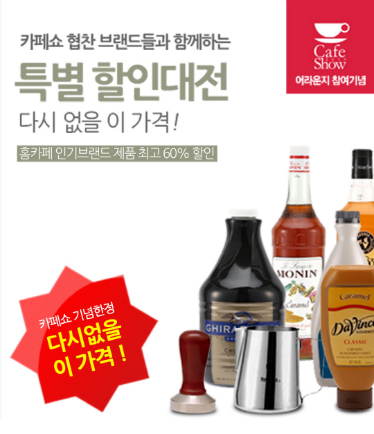커피 전문 유통 브랜드 어라운지가 '제 12회 서울 카페쇼' 최대규모 참가를 기념하여 다양한 커피용품 특별 할인전을 오는 30일까지 실시한다.