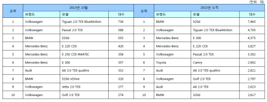 10월 수입차 판매대박 'BMW-폭스바겐' 1위싸움