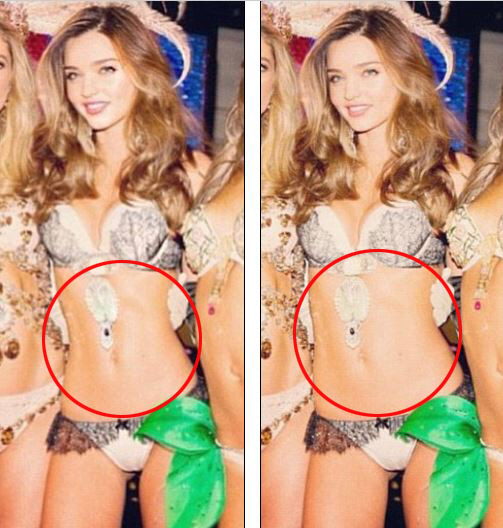 원본 사진과 달리 다른 사진에서는 미란다 커의 허리가 더 잘록해진 것으로 보인다.