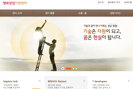 행복창업지원센터 포털은 창업가들에게 SK텔레콤이 보유한 ICT기반 기술 및 각종 비즈니스 관련 다양한 노하우 등을 제공하는 창구 역할을 한다.