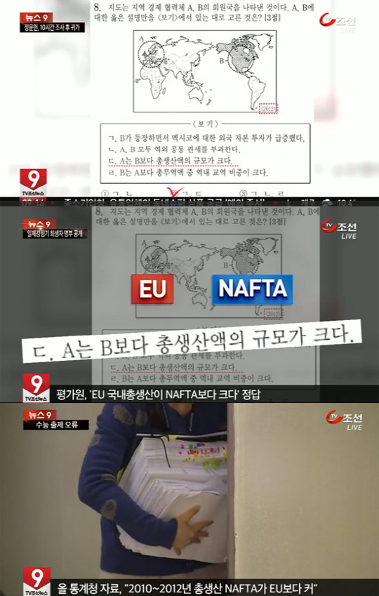 20일 경향신문에 따르면 오류 논란이 일고 있는 문제는 유럽연합(EU)과 북미자유무역협정(NAFTA) 회원국에 관한 내용을 묻는 세계지리 영역 8번 문항이다.