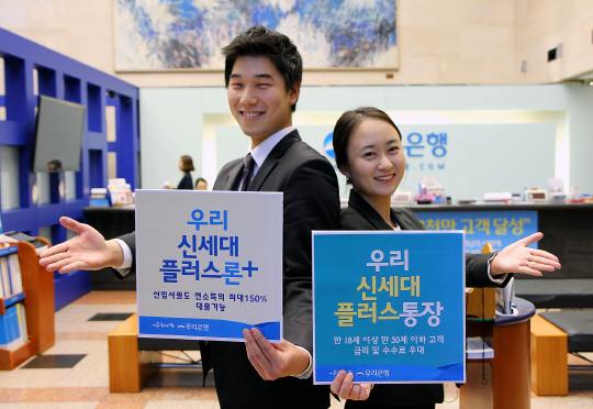 우리은행(은행장 이순우)은 신세대 고객의 금융거래를 우대하기 위해 금리와 수수료 혜택을 주는 입출식 통장과 대출한도와 금리를 우대하는 신용대출상품을 결합한 '우리 신세대플러스 패키지' 를 출시했다.