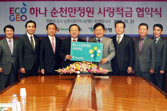 하나은행(은행장 김종준,www.hanabank.com)은 21일 오후 을지로 하나은행 본점에서 순천시(시장 조충훈)과 '2013 순천만 국제정원박람회'의 성공적인 개최에 이어 순천만정원의 지속적인 보전을 위한 후원 협약을 체결했다고 밝혔다.