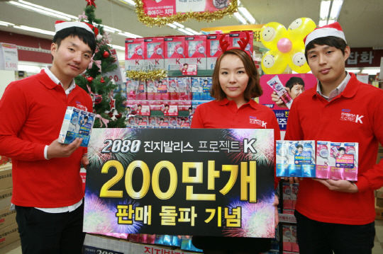 애경의 토털 오럴케어 브랜드 2080은 지난 3월 출시한 잇몸질환 전문치약 '2080 진지발리스 프로젝트K'가 출시 6개월 만에 200만개 판매를 돌파했다고 25일 밝혔다.
