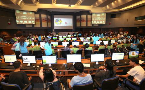 | LG유플러스가 태국 방콕에서 개최한 글로벌 IT챌린지 대회에 참가한 세계 청소년들. 사진제공=LG유플러스 |
