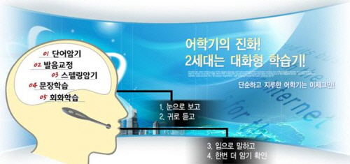 학습 콘텐츠 구성은 회화테잎 400개 분량외에도 유아,초,중,고 학습단어와 3만 문장이 탑재되어 있다.