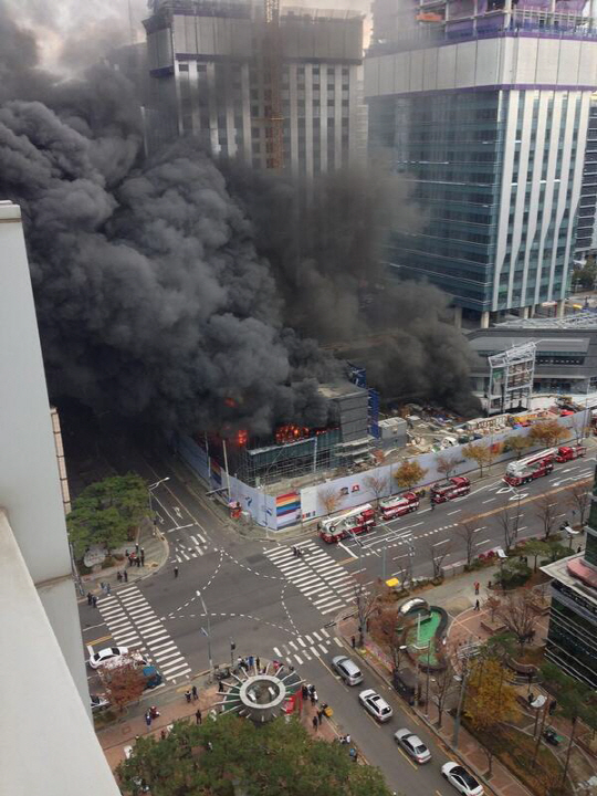 서울 구로동 구로디지털단지 부근 호텔 신축 공사장에서 화재가 발생했다.