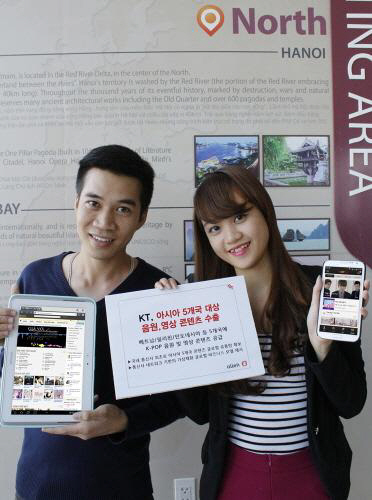 KT 지난 7월 베트남 1위 통신사 비에텔(Viettel)에 K-POP 벨소리와 통화 연결음을 공급한 데 이어 인도네시아, 필리핀, 캄보디아, 라오스 통신사와 음원 및 영상 콘텐츠 공급 계약을 체결했다고 27일 밝혔다.