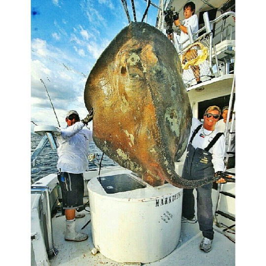 상어 전문 낚시배 선장 마크 콰티노는 "이 가오리의 무게가 약 362kg에 달하고 길이가 약 4.2m 였다"며 "낚아 올릴때 공룡을 잡은 줄 알았다"고 밝혔다. 이어 "온 몸에 따개비가 서식하는 것으로 보아 이 가오리의 나이가 많은 것으로 추측된다"고 덧붙였다.