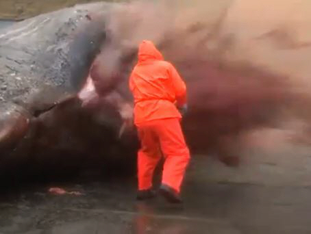 죽은 고래의 배를 가르자 폭발하는 영상이 공개돼 화제다.