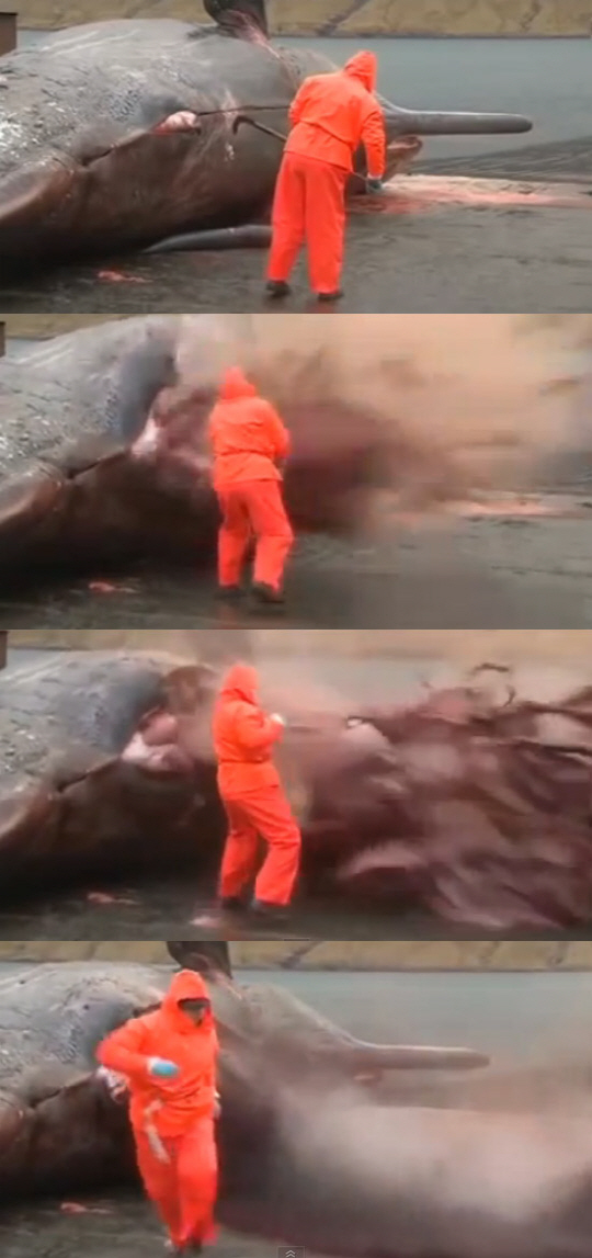 향유고래 폭발에 대해 전문가들은 "시체가 부패 후 세균이 분해되면서 메탄가스가 배안에 축적된 것 같다"고 설명했다.