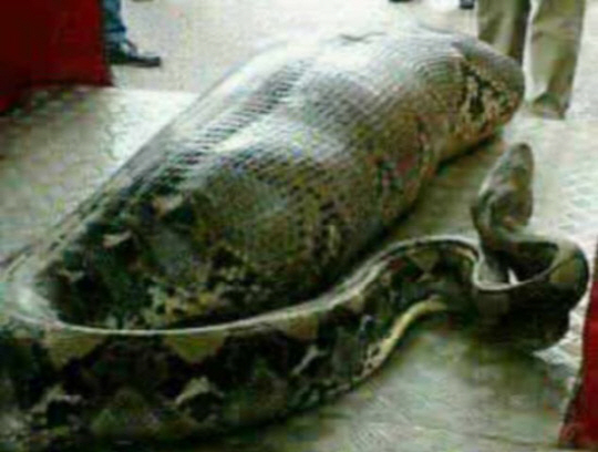 사람을 삼킨 것으로 의심되는 '식인 비단뱀' 사진이 등장, 보는 이들을 경악케 하고 있다.