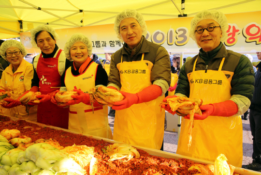 KB금융그룹(www.kbfg.com, 회장 임영록)은 30일 독거노인, 소년소녀가장 및 다문화 가족 등 소외된 이웃에게 김장김치를 전달하는「2013년 사랑의 김장나눔」봉사활동을 실시했다.