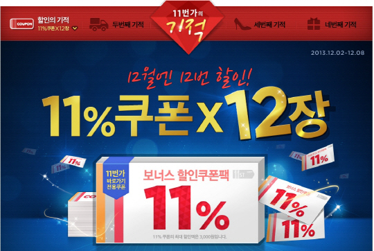 11번가 박준영 마케팅 본부장은 "올 한해 동안 보내주신 성원에 보답하고자 12월 한 달간 소비자의 소비 패턴에 맞춘 쇼핑 혜택을 마련했다"고 밝혔다.