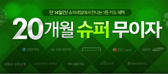 G마켓은 오는 15일까지 2주 동안 신한, KB국민, 현대, 삼성 등 10개 신용카드 사용고객이 20만원 이상을 결제 할 경우 20개월 또는 12개월 무이자 할부 서비스를 제공하기로 했다.
