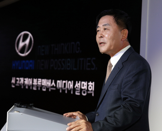 현대자동차㈜가 현대차 서비스 브랜드인 '블루멤버스(BLUEmembers)'의 대대적인 확대 개편에 나섰다. 곽진 현대차 판매사업부장(전무)이 포인트 적립제의 확대 개선 등 새로운 '블루멤버스' 서비스에 대해 설명하고 있다.