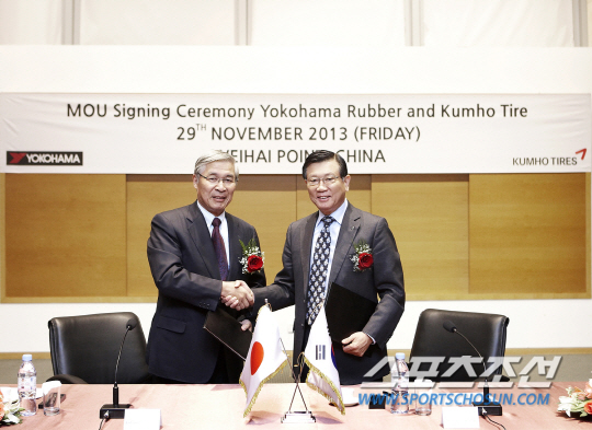 금호타이어는 지난달 29일 세계 8위의 타이어 기업인 일본 요코하마와 손잡고 글로벌 경쟁력 강화를 위해 전략적 제휴 MOU를 체결했다고 밝혔다. 이날 조인식은 중국 웨이하이 포인트에서 금호아시아나그룹 박삼구 회장 및 타이어 관계자와 요코하마 고무㈜ 나구모 타다노부 회장 등이 참석한 가운데 열렸다.
