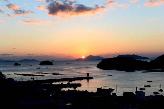 겨울철 통영 여행에 빼놓을 수 없는 게 있다. 바로 낙조다. 최고의 낙조 포인트로는 미륵도를 꼽을 수 있다. 그중 달아 공원과 그 주변이 입권이다. 흔히들 일몰 감상을 위해 달아공원으로 향한다. 한려수도에 점점이 박힌 섬들 사이로 내려앉는 낙조의 붉은 기운이 황홀경을 빚어내는 곳이다. 하지만 통영의 낙조를 사진으로 담고자 한다면 달아 공원 인근 연명포구를 추천한다. 포구의 정취와 주미도, 학림도, 비진도, 연대도, 욕지도 등 올망졸망 섬 사이로 지는 해가 더 정감 있다. 둥그런 붉은 해만 잡아내기보다는 주변 포구와 양식장, 고깃배 등 바다를 지키는 테마들이 앵글을 더 풍성하게 채워준다.